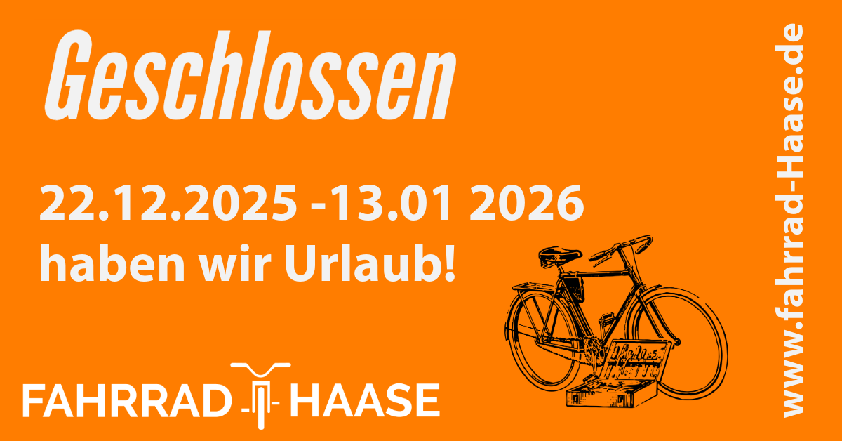 Wir haben Montag und Dienstag geschlossen. Zu dieser Zeit kümmern wir uns um Ihre Räder.